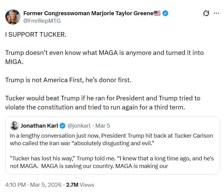 The Woke Right is a Woke fifth column working internally against America, MAGA, the (American) Republican Party, and the American conservative movement, which is the last anchor tethering our country to the Constitution, common sense, and reality. Whatever might be its primary sources of intention and energy—be those foreign influence, “Deep State,” Democrat, or an organic and opportunistic paleoconservative revolt, or some combination—being a fifth column in the Woke assault against American and the West is the role it certainly plays.