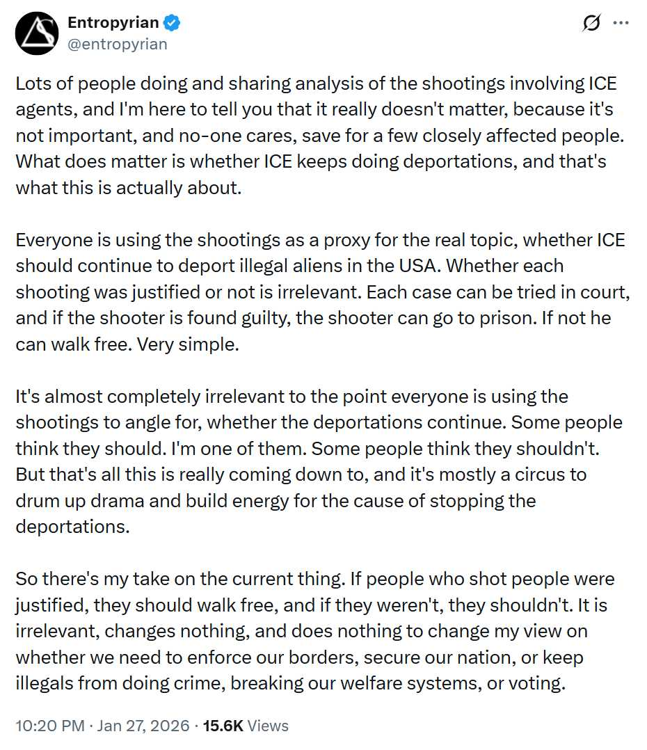 The result of this Wokification of discourse is that there’s an incredible and intolerable amount of patently ridiculous discursive and political “third rail” space that makes a great deal of honest discourse and real, necessary problem-solving impossible. As problems mount, the maintenance of the political third-rail space rightly begins to be identified as a big part of the festering problems, and it will be rebelled against. As this political and discursive pendulum swings back, as described above, it will not do so gently.