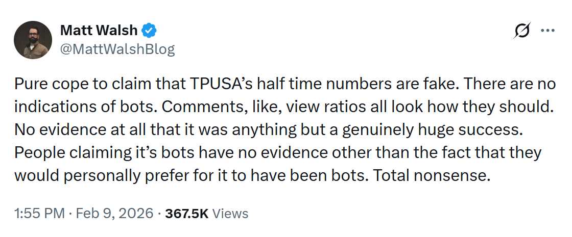 TPUSA did a good job getting numbers, showing competition, and simultaneously affirming that because the Left sees it that way absolutely no spaces in American life should be free from culture war politics and just normal and fun. Everything for particular political tribes.