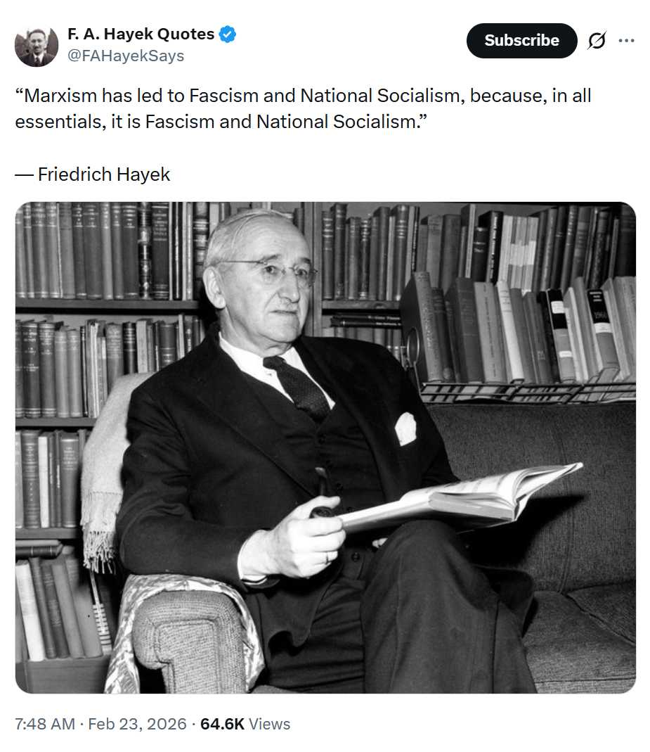 Quotes like this are why the Woke Right thinks Hayek is part of the problem.