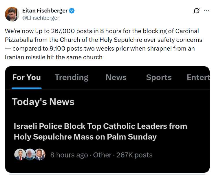 This was never a real story, guys. Just so you know. A beat cop making an impertinent mistake is not an international incident. There's more story to Pizzaballa running to the media than in what actually happened. We're being manipulated.