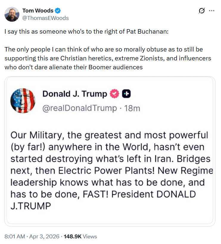 The Woke Right is a Woke fifth column working internally against America, MAGA, the (American) Republican Party, and the American conservative movement, which is the last anchor tethering our country to the Constitution, common sense, and reality. Whatever might be its primary sources of intention and energy—be those foreign influence, “Deep State,” Democrat, or an organic and opportunistic paleoconservative revolt, or some combination—being a fifth column in the Woke assault against American and the West is the role it certainly plays.
